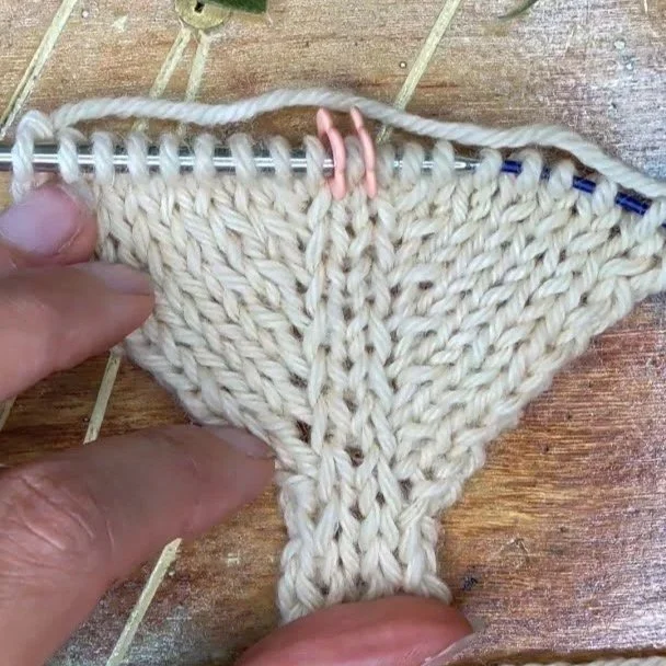 Leaning Away: Lifted Increases with the Right Lifted Increase worked first (on the right), and the Left Lifted Increase worked second (on the left). This construction is typical for thumb gussets.
